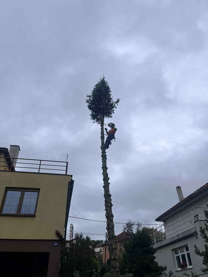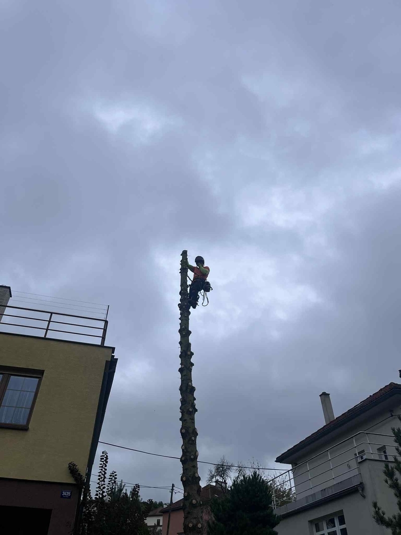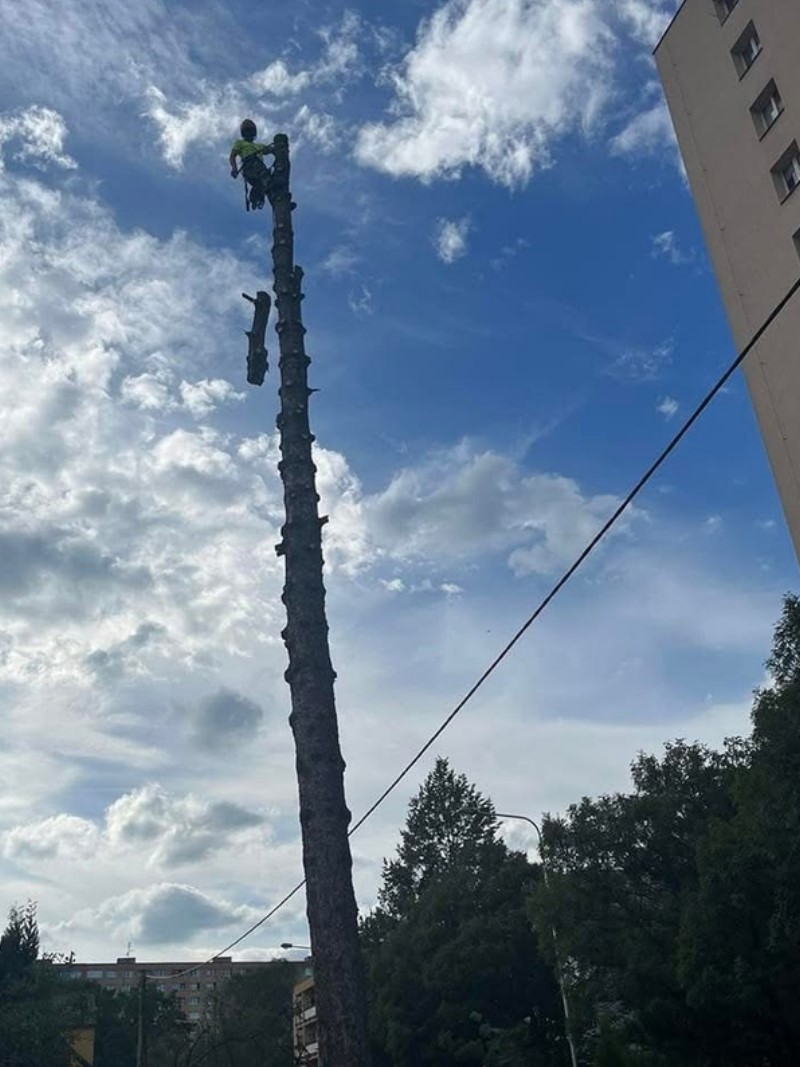 Provádíme rizikové kácení stromů v zastavěných oblastech, postupné kácení či ořez nebezpečných stromů - to mohou být například proschlé, nahnilé, přestárlé nebo větrem poškozené stromy. Veškeré rizikové kácení provádíme pomocí horolezecké a stromolezecké techniky. Disponujeme špičkovou technikou a především pak také mnohaletou praxí.