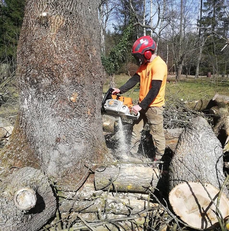 Nabízíme profesionální rizikové kácení stromů, frézování pařezů, štěpkování dřevní hmoty, údržbu zeleně, sečení travnatých ploch, dřevorubecké práce,